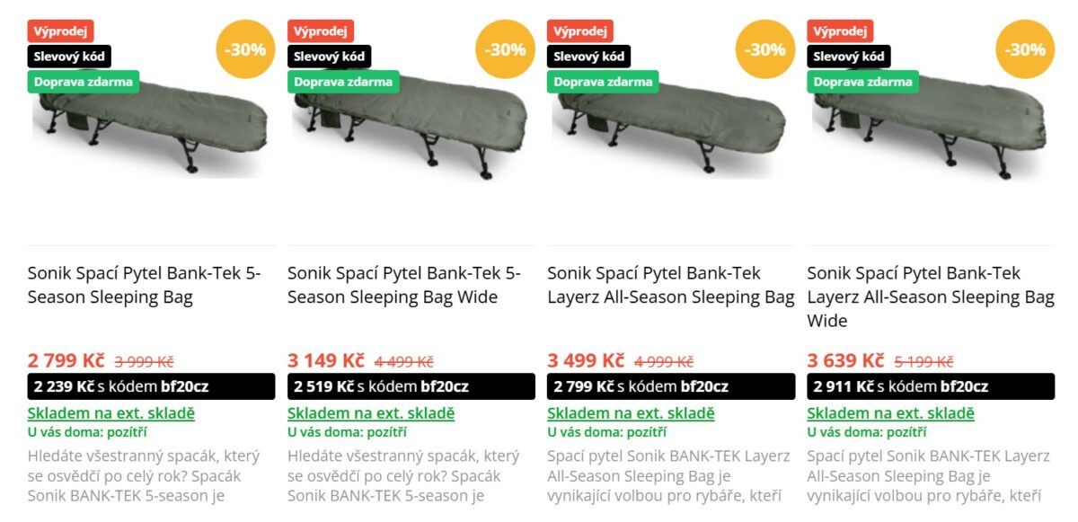Jestli jste někdy v noci na rybách klepali kosu, moc dobře víte, že na spacáku se šetřit nevyplácí. Jenže když se sejde výprodej + BLACK FRIDAY, dává smysl pořídit za peníze, které by normálně padly na obyčejný spacák.