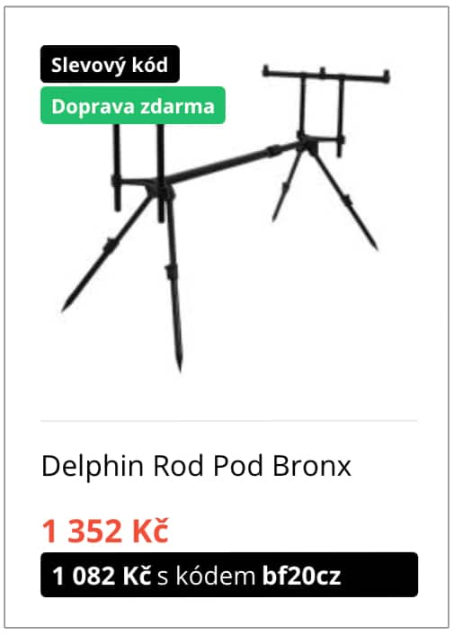 Jestli jste nějaký čas pokukovali po tom, že byste si stojan na pruty pořídili, teď během slev Black Friday (do políčka se slevovým kupónem napíšete bf20cz pro nakupující z ČR nebo bf20sk pro Slováky) je k tomu ten nejlepší čas. Stejně jako v případě, že vám starý stojan dosluhuje. Na e-shopu Parys.cz vás Delphin Rod Pod Bronx vyjde na něco přes tisícovku. A to je hodně dobrá cena!