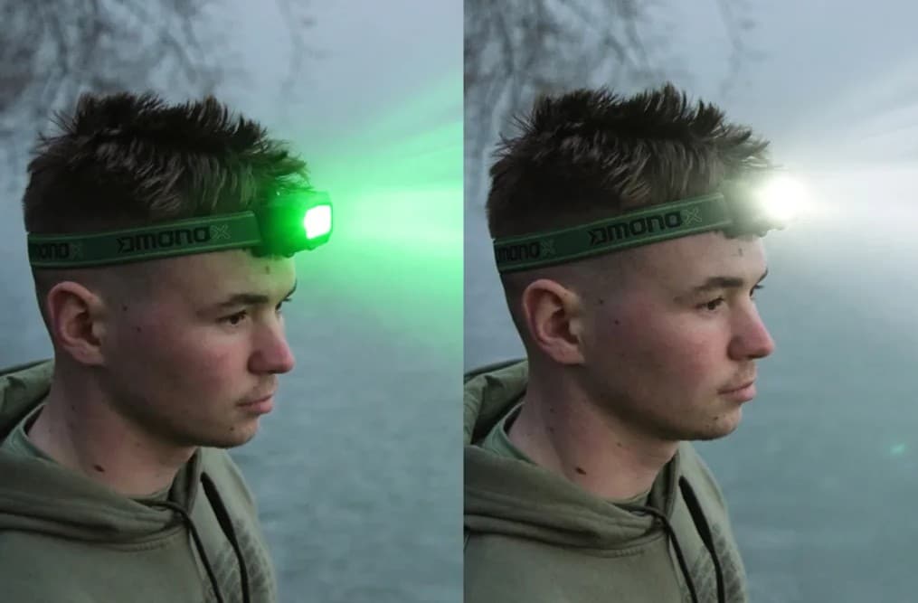 Čelovku lze ohýbat až do úrovně 90 °, takže si můžete lampičku na hlavě ohnout a při čekání na záběr třeba připravovat novou montáž nebo pracovat na zatraktivnění krmení. Použít k tomu můžete hned dva dvě barvy LED diod.