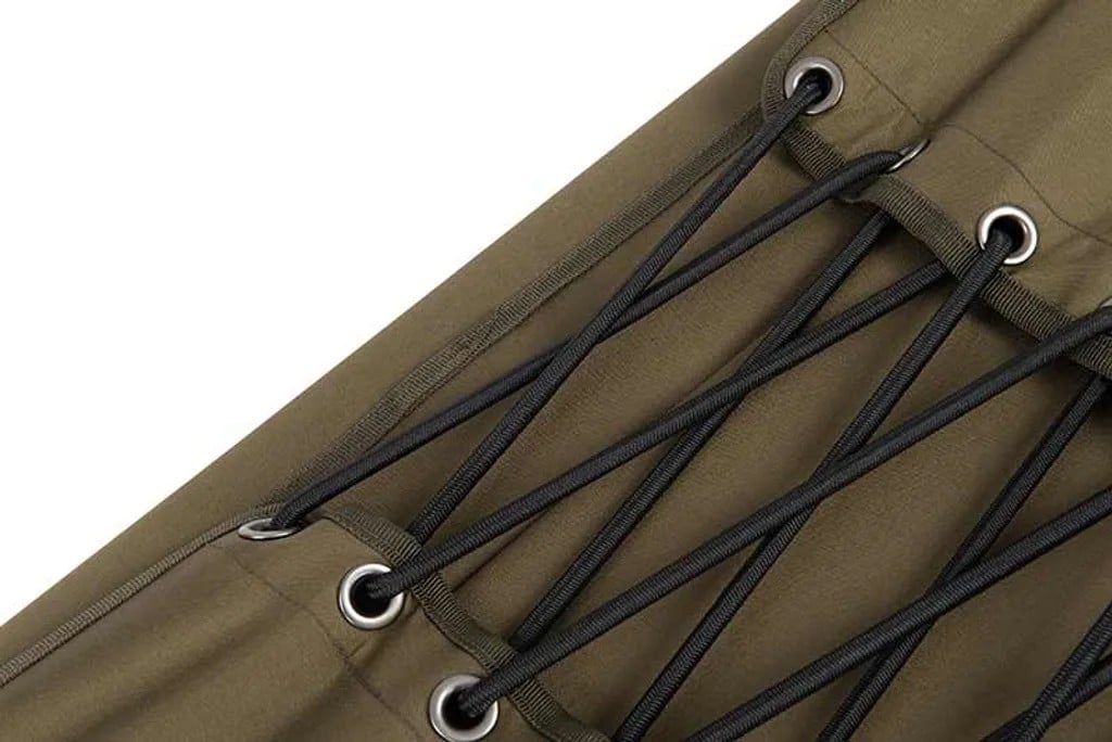 Už při prvním pohledu na lehátko si každý všímavý rybář uvědomí jednu důležitou věc – okraje lehátka navazují na jeho vnitřek. Není to tedy tak, že byste museli ležet pouze ve vymezeném prostoru, můžete využít kompletně celou plochu. Tedy neskutečných 223 cm na délku, 101 cm na šířku a 40 cm na výšku.