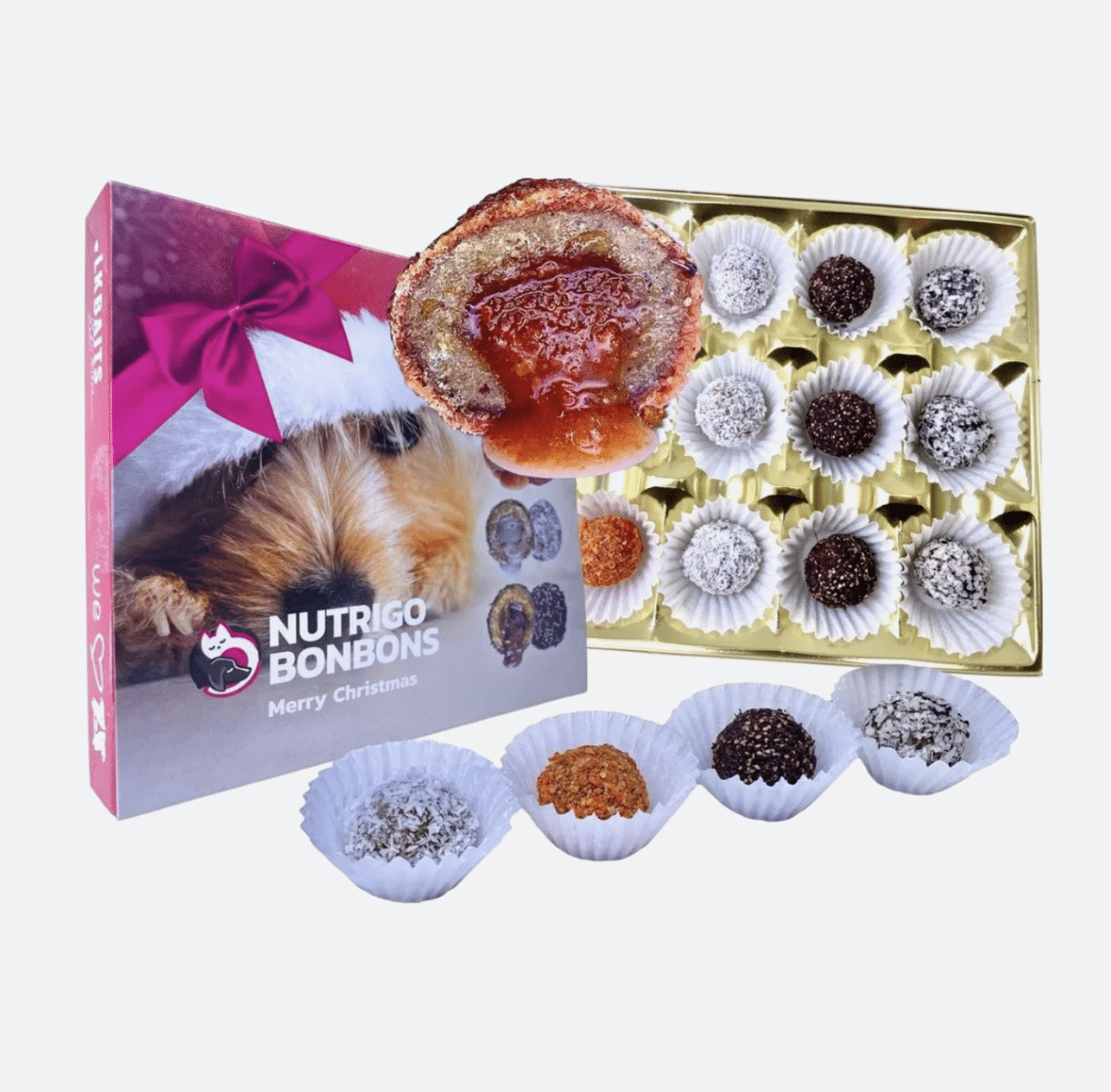 Speciální kapitolou jsou – bonboniéra pro menší psy. Ručně vyráběné psí „bonbóny“ s tekutou náplní, masovou chutí a doplněné sezónním ovocem a zeleninou.