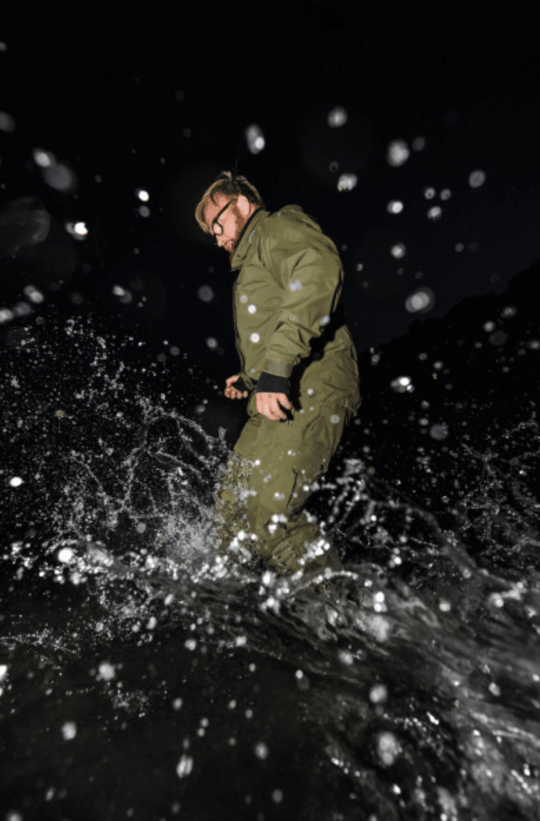 Čekej bundy a kalhoty typu Dozer nebo Urus — nepromokavé, s membránovou technologií, která vydrží i v dešti, zimě nebo při dlouhém stání u vody.