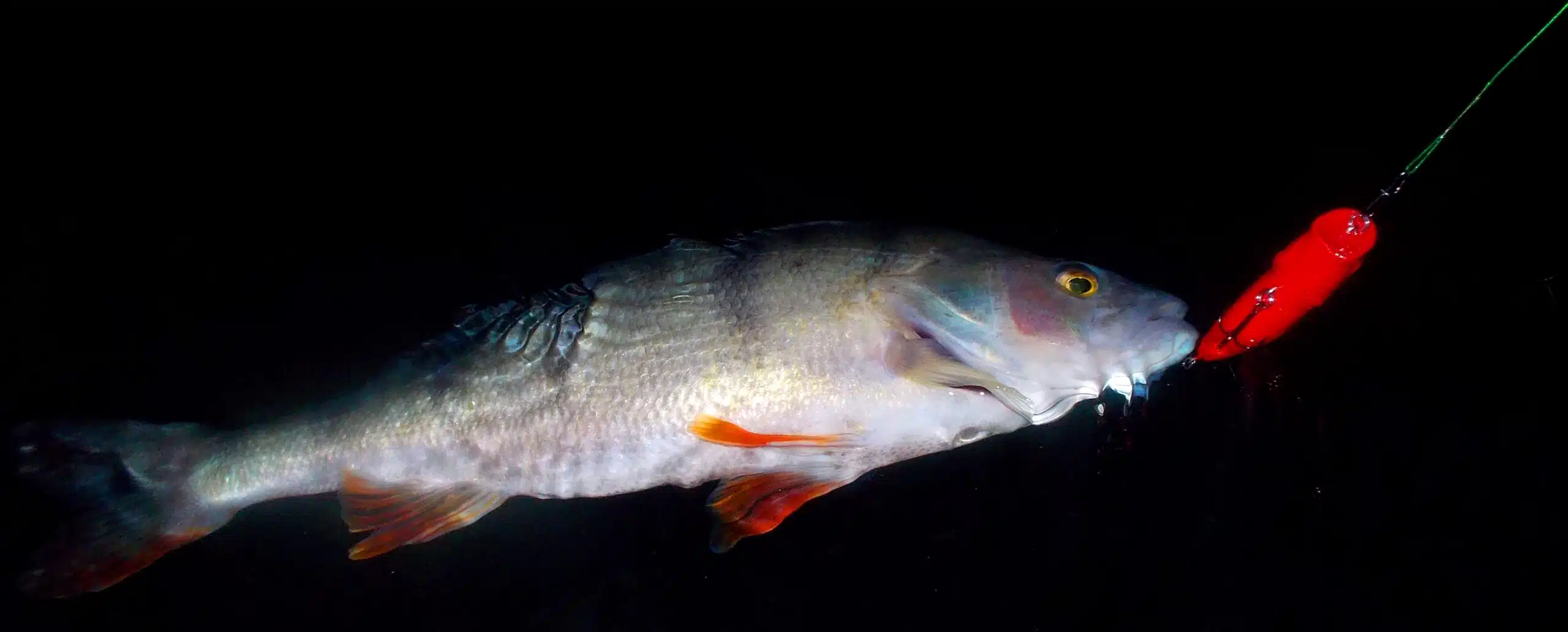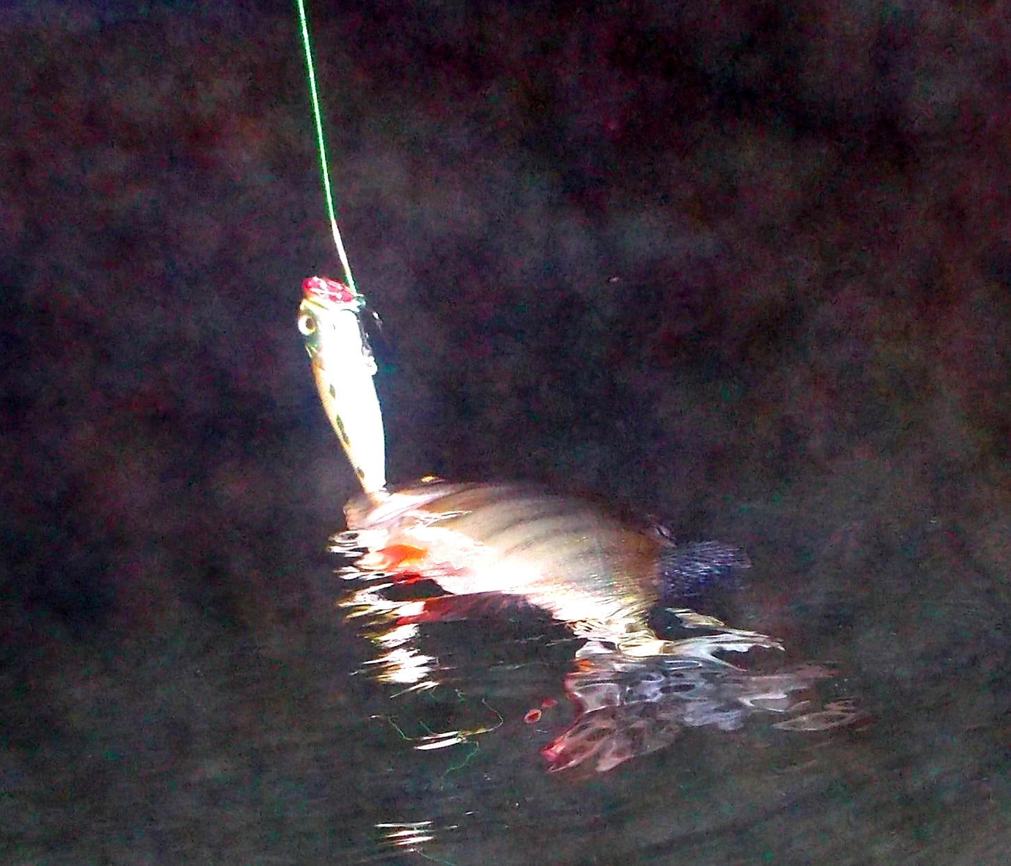 Jen tak ledabyle nahodím nástrahu kamsi do dálky, a začnu se vracet na místo, kde jsem předtím stál. Nástraha dopadne na hladinu. Dvakrát otočím kličkou a náhle v udici ucítím silný úder. Připadám si, jako kdybych dostal přesný direkt na nos. Jsem v šoku. Nestíhám reagovat. Zmateně sahám po brzdě. Pod silným tahem se prut skloní do vodorovné polohy. Šňůra je našpanovaná jako pohnuté nervy. Snažím se něco dělat. Pink! Je pozdě.