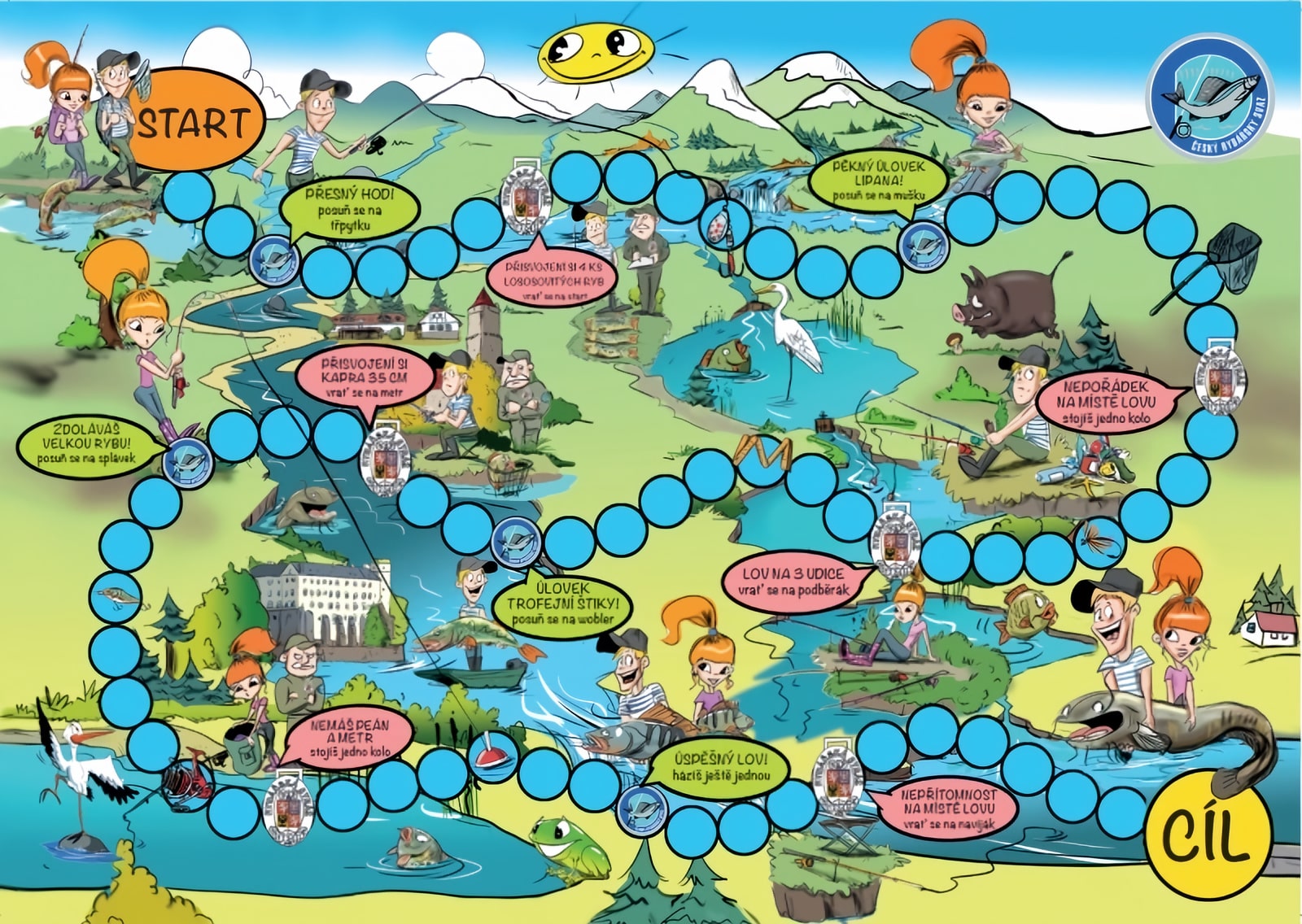 Šlápneš na odznak rybářské stráže a bum – stojí tě to jedno kolo. Zatímco děti hážou kostkou dál a radují se jako u Člověče nezlob se.