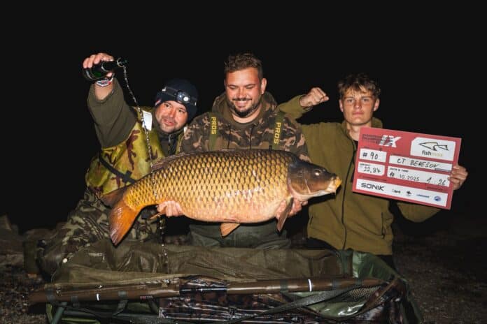 Středočeši se hodinu a půl po půlnoci vyfotili s parádním šupináčem o hmotnosti 22,84 kilo a splnili si tak kvótu jednoho pořádného kapra co dva dny. V pondělí připsali první bodovanou rybu o hmotnosti 20,50 kg, ve středu přidali šupináče 18,85 kg a v pátek zapsali zatím nejlepší kousek 22,87 kilo.