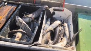 Výsledkem je velké množství uhynulých ryb, které z hladiny sbírají jak rybáři z tamní místní organizace, tak zástupci územního svazu, které čeká víkend plný náročné a nezáviděníhodné práce…