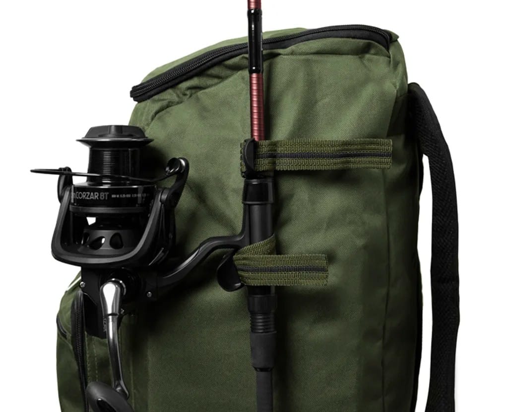 Po stranách pak najdete šikovné úchytky na pruty, podběrák nebo třeba termosku s čajem. Hlavní je, že všechny důležité věci máte při sobě, ale ruce máte volné. Bez potíží se tak dostanete i do hůř přístupnějších míst, kam chodí méně rybářů a kde je tím pádem i více ryb.